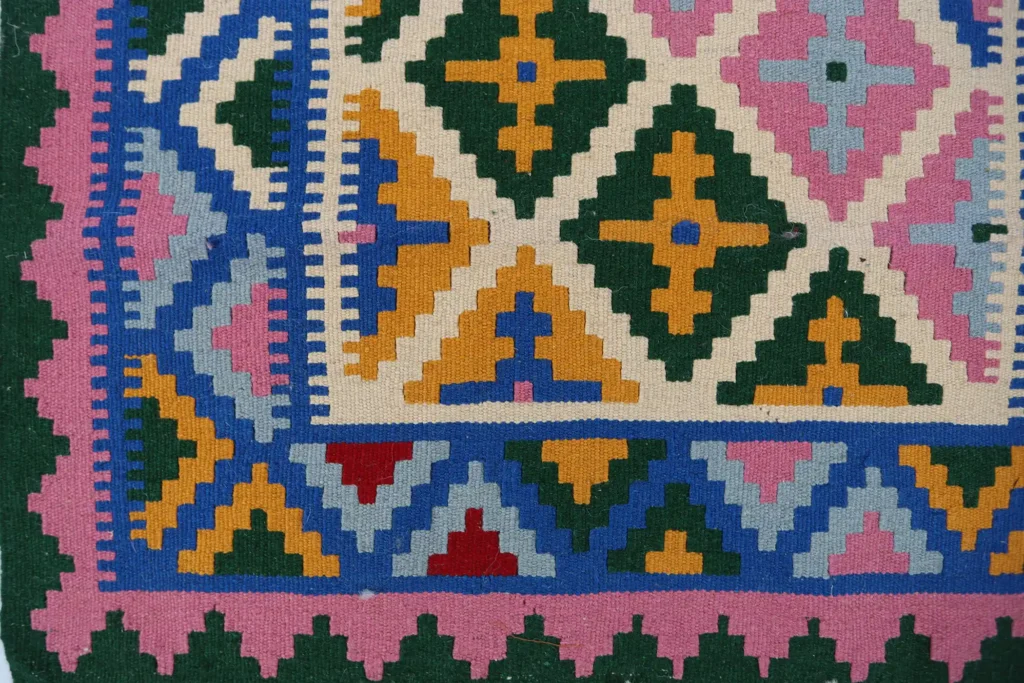 This kilim is fully reversible, allowing you to use both sides and extend its lifetime. It’s a versatile piece suitable not only as a floor rug but also as a sofa throw, wall hanging, or decorative accent in modern, traditional, bohemian, rustic, or eclectic interiors.