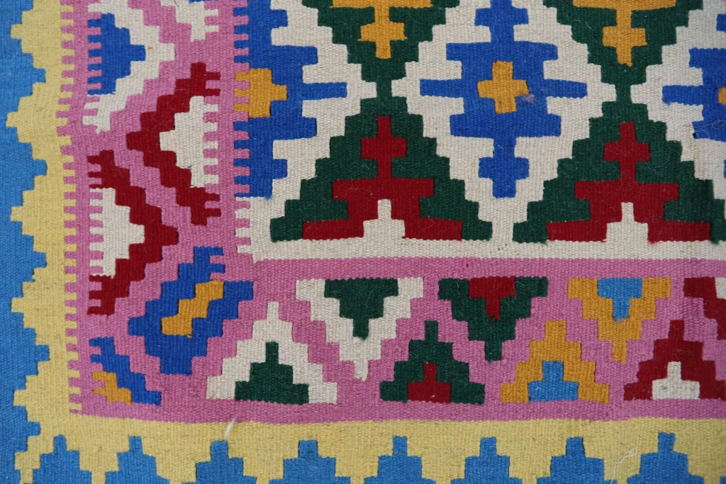 This kilim is fully reversible, allowing you to use both sides and extend its lifetime. It’s a versatile piece suitable not only as a floor rug but also as a sofa throw, wall hanging, or decorative accent in modern, traditional, bohemian, rustic, or eclectic interiors.