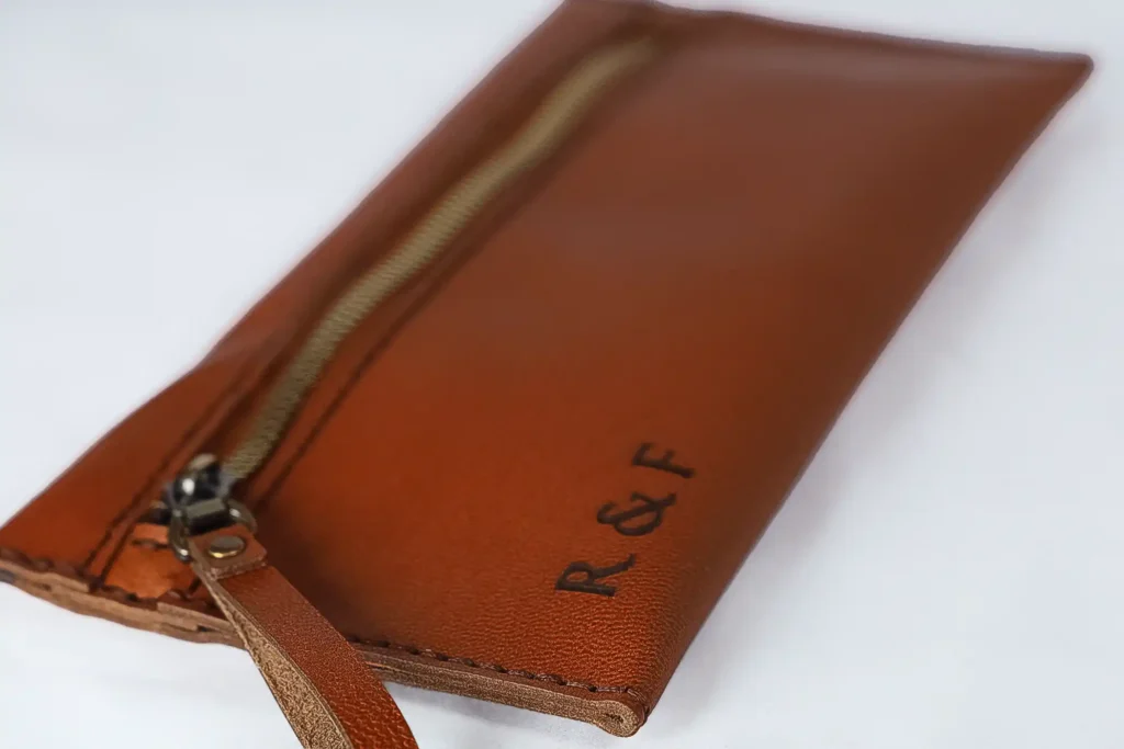 - A leather hand pouch or clutch
